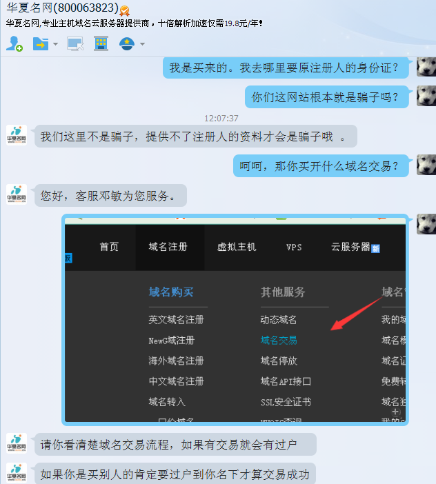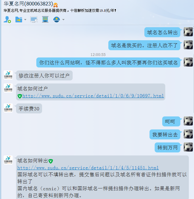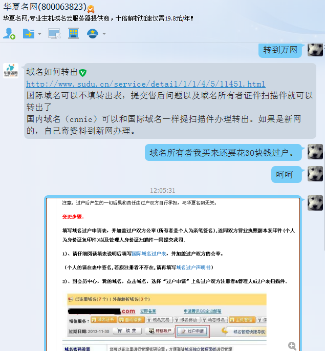 垃圾华夏名网!垃圾域名注册商!过户要钱转移麻烦客服垃圾